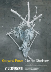 Onder de titel ‘Gimme Shelter’ verbeeldt Pouw de behoefte aan bescherming door middel van installaties, kunstenaarsboeken en tekeningen. Hij toont “schuilhutten” van takken met bezwerende teksten (‘If you don’t give me shelter I am gonna fade away)’. Er zijn kloostertafels te zien met uitklapbare boeken, kartons met de beschermende mantel van Madonna waaronder mensen kunnen schuilen, ruige tekeningen van bomen met kale takken waartussen kluizenaars zich hebben teruggetrokken.