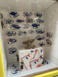Een Tokonoma is een nis in een traditionele Japanse kamer. In de nis worden mooie voorwerpen getoond. Vaak is dat ikebana, vaas met bloemschikkunst, een bonsai boompje of een mooie vondst uit de natuur. Aan de wand hangt meestal een ‘ shodo’ , een rolschildering met een of meer karakters. Dit kastje is een Tokonoma met ‘mooie’ gevonden voorwerpen.