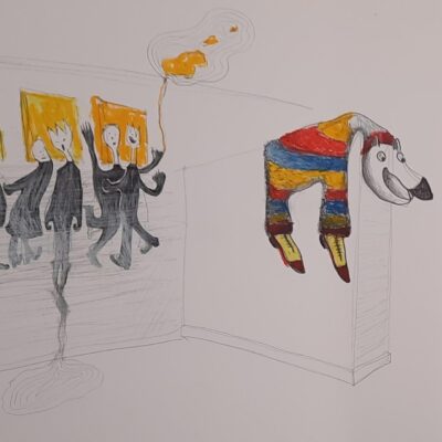 De zaterdagtekenaars wordt gevraagd eens goed rond te kijken om ideeën op te doen voor een heuse wandschildering. De tekenaars kiezen hun eigen favorieten maken in potlood schetsen die daarna worden uitgewerkt op groter formaat en in kleur.