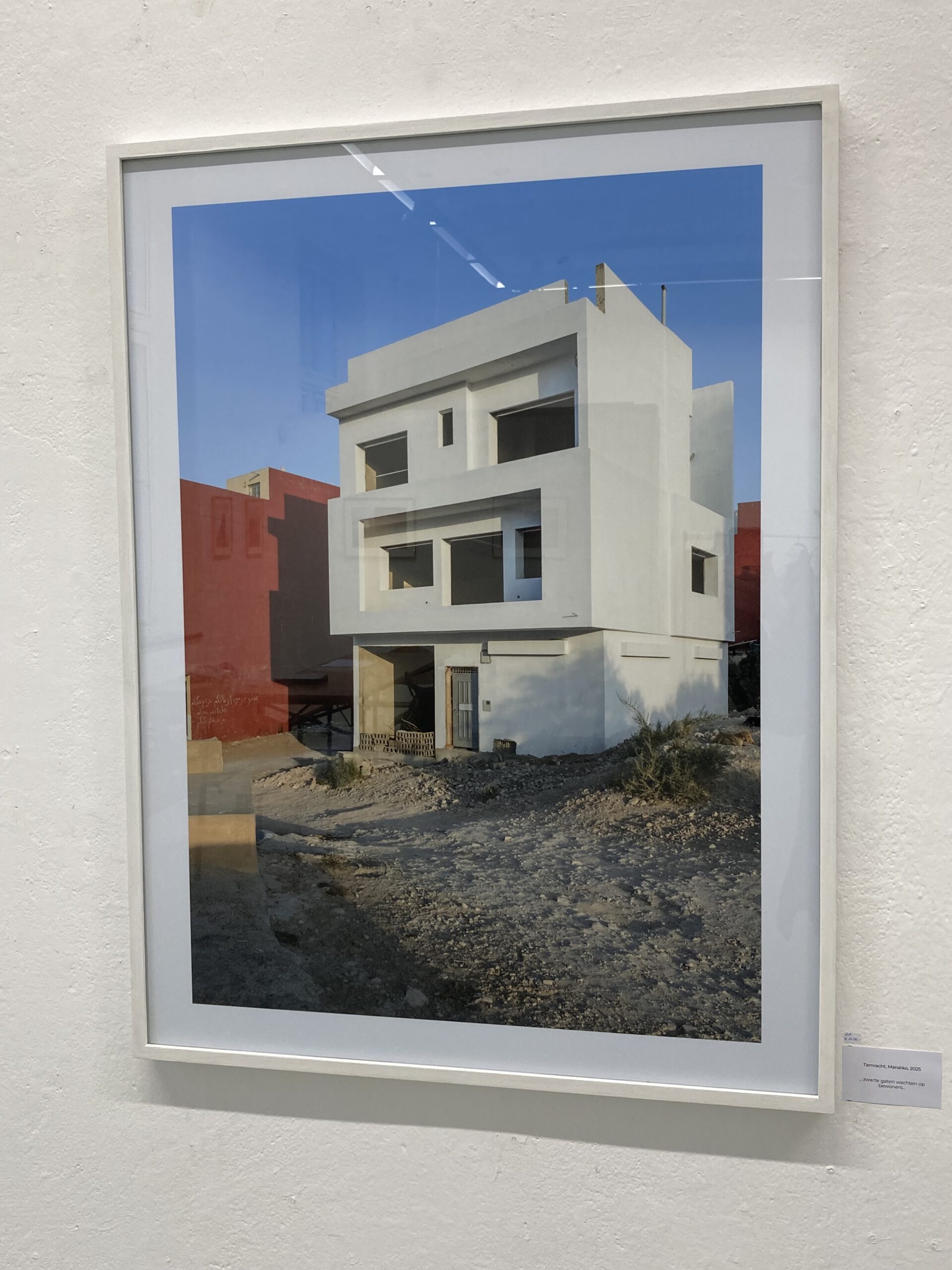 Wees er snel bij want ze zijn ook weer snel weg. Slechts twee dagen duurt de expositie. Foto’s die een beeld geven van allerlei soorten bouwsels. Bouwsels die alle kanten opgaan. En waar geen logica in lijkt te zitten. Maar die wel organisch aan elkaar verbonden zijn. Bouwsels waar de verf over heen is geschilderd maar die niet van oorsprong bij elkaar hoorden. Soms zijn het aanbouwsels die later zijn aangebracht. Toch lijkt het een organisch geheel te zijn geworden. En dat komt vooral door de verf die er overheen is geschilderd. Tegelijk zie je dat er ook iets niet klopt in die samengevoegde bouwsels. Het zijn min of meer toevallige samenvoegingen. De verf verbindt ze maar ze zijn van verschillende datum. Door de verf wordt er een eenheid van gemaakt.