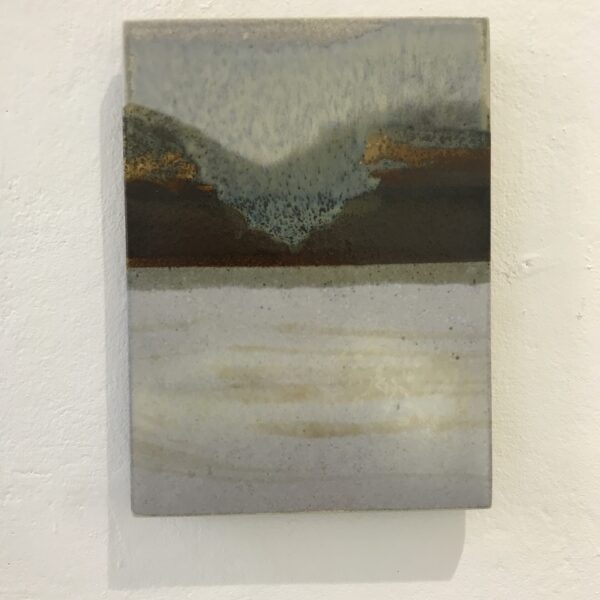 Dit weekend hangt WG Kunst vol met de keramiek van Iet Kortschot. Tegels die je aan de wand kunt hangen. Op de tegels zie je landschappen. Iet schildert met penseel verf die vermengd is met glazuur op de tegels en daarna gaan ze in de oven. Een procedé waar ze door de jaren heen veel ervaring mee heeft opgedaan en dat is te zien. Want om met zo’n kwetsbare, nauw luisterende techniek zulke resultaten te bereiken getuigt van vakmanschap. Ik verbaas me over haar landschappen. Ze suggereren vooral landschappen. Onmiskenbaar.