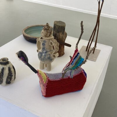 Ik probeer te achterhalen of er verschillen zijn met eerdere jaren. Dan zou er sprake zijn van een tendens. Van een geleidelijke verandering in het aanbod. Maar dat is niet zo eenvoudig. Ik heb al het werk uit eerdere Kerstsales niet op mijn netvlies. En moet dus afgaan op mijn inpressies bij binnenkomst. Wat me het meest opvalt is de enorme variatie in technieken.