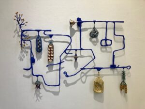 Ik begin steeds enthousiaster te worden over deze expositie. Hoeveel moois daarin getoond wordt wat in de beslotenheid van het atelier in de verf is gezet of aan elkaar gemaakt.