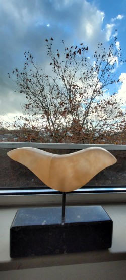Vogel / oranje seleniet Sokkel/ Belgisch hardsteen
