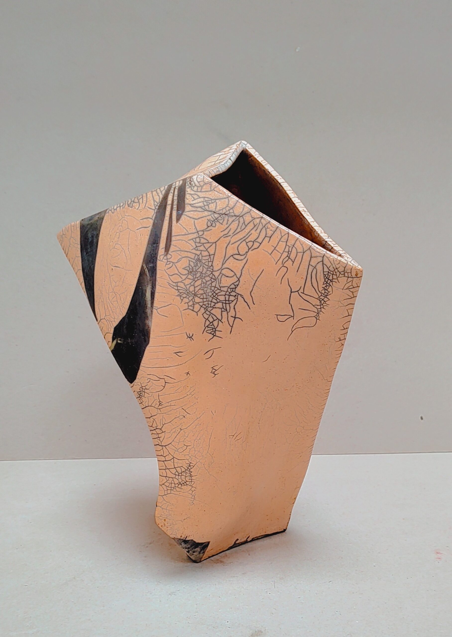 Blok Vaasvorm Keramiek, Raku gestookt, Klei Franse grès H 35 x B 26 x D 15 cm Hand gevormd, Raku gestookt (aardewerk), Kleisoort Franse grès 2001