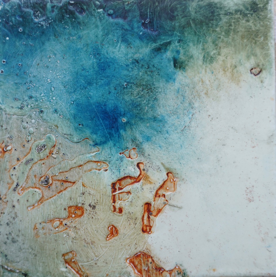 Bijenwas, pigmenten en olieverf op houten paneeltje