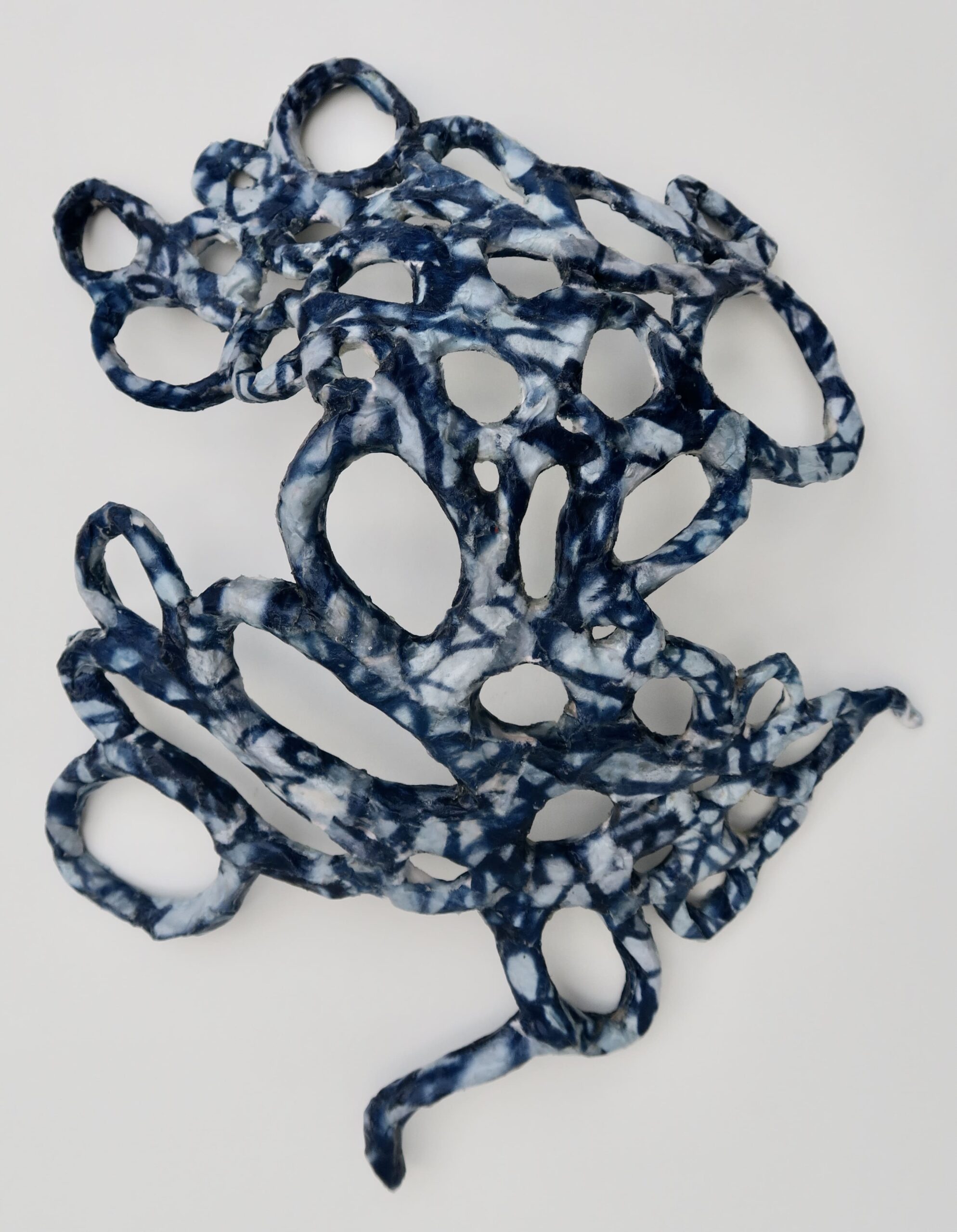 wandobject van witte klei en cyanotypie: