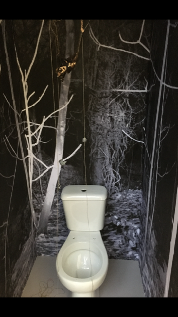Ga zonder gêne op één van de wc’s zitten en ruik de geur van cederhout of appel en geniet van een donkere welluidende stem die een spannend verhaal vertelt.