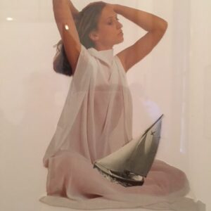 Kijk door de vergrootglazen van een draaiende installatie in de getekende gezichten van alle kunstenaars…of experimenteer met een bolle lens die alles op zijn kop zet! Maar er zijn ook verfijnde kleine collages, zoals de chinese vlinder die maar niet gevangen wordt, of het verstilde portret van een roze meisje met een bijna gekapseisd scheepje op de woelige baren van haar schoot….